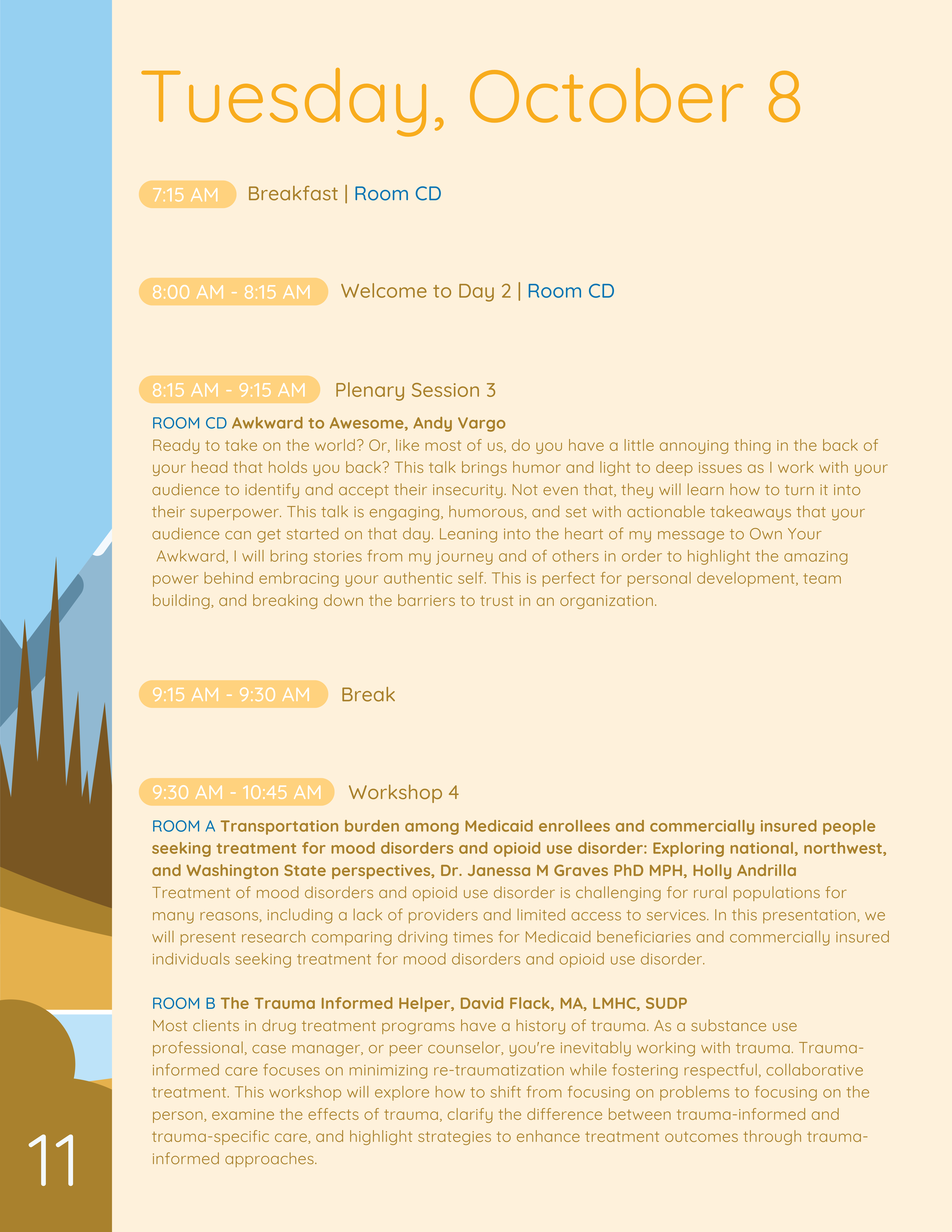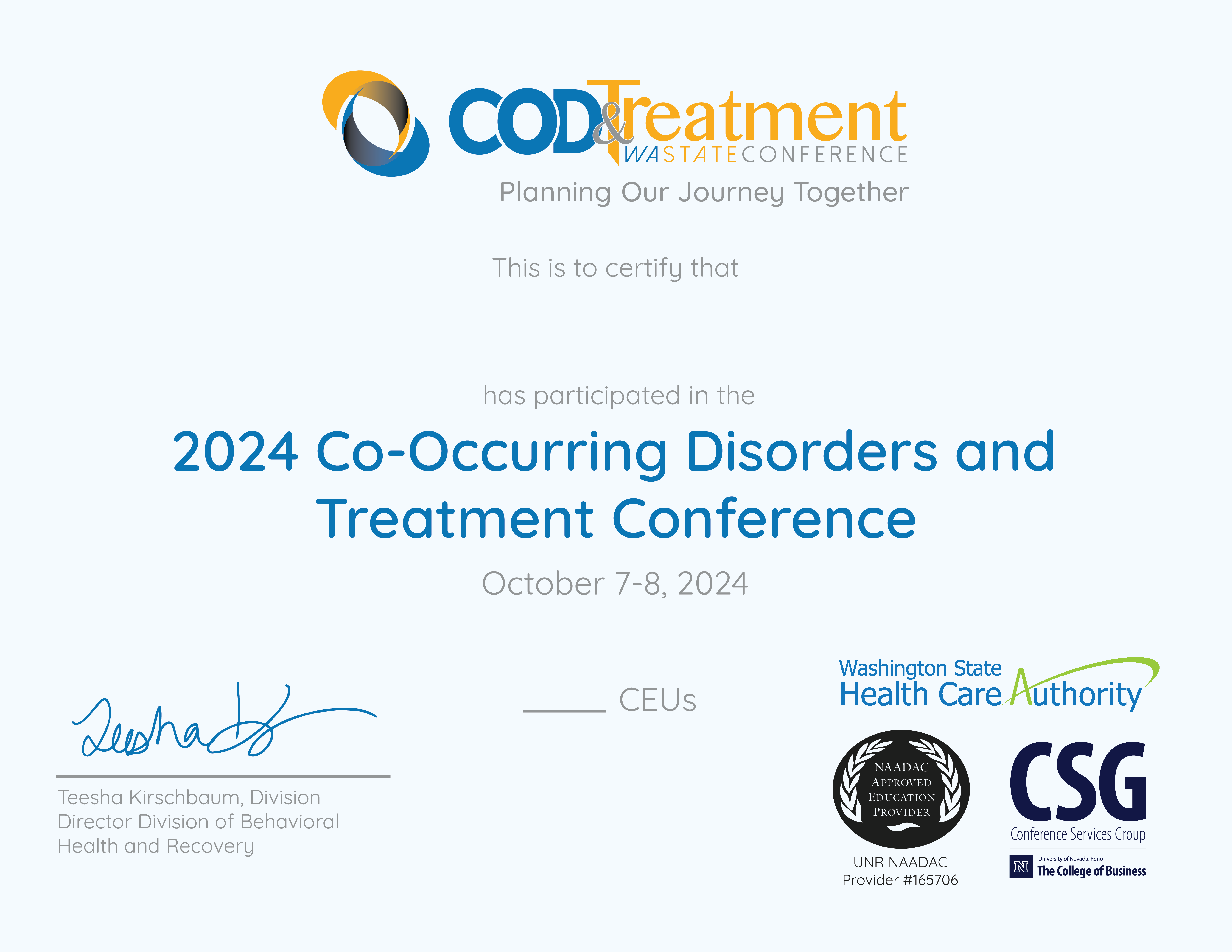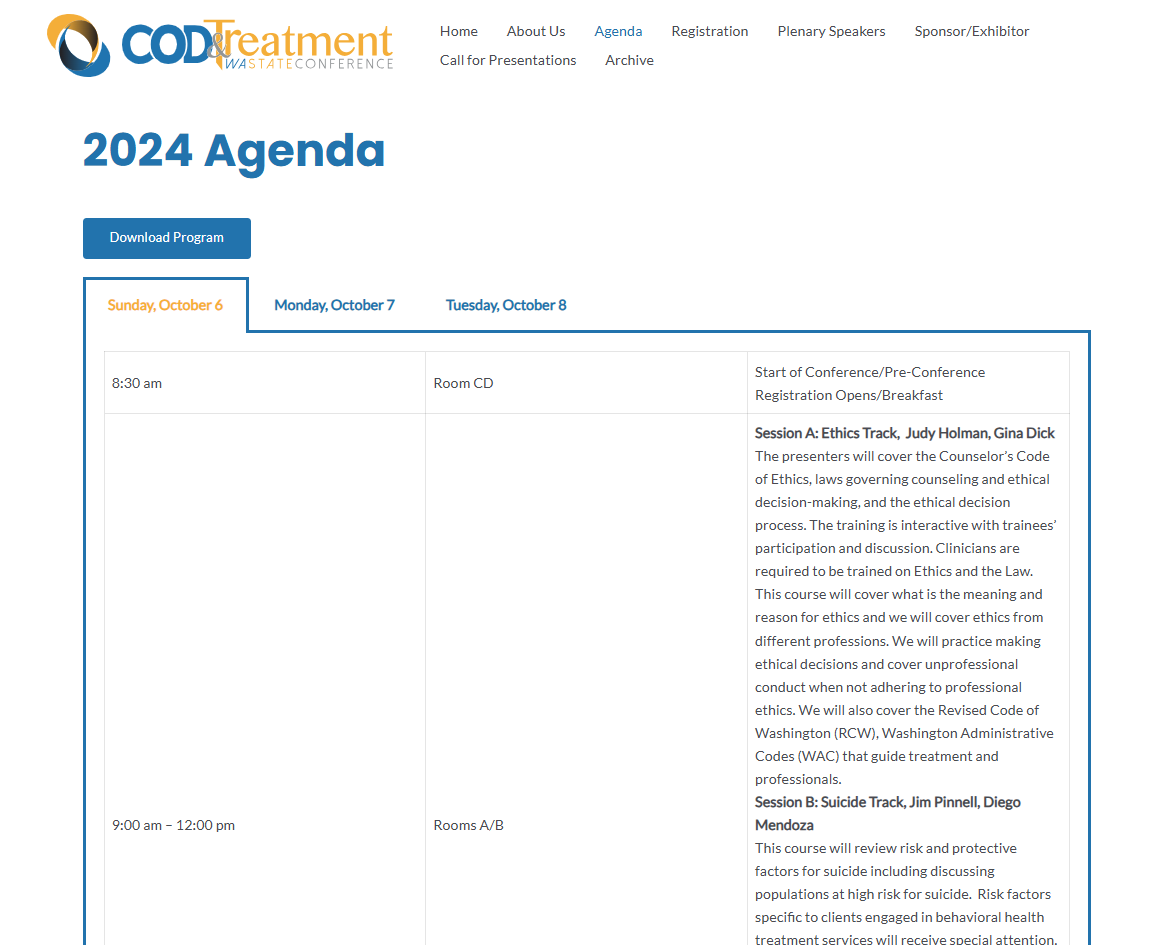 According to the website, “With each Co-Occurring Disorders Conference we continue to strive to bring together experts from Washington and across the nation to share information about innovative therapeutic techniques, skills, programs, practices and policies that offer a relevant and enjoyable learning experience. Our goal is to promote integration of services across the public mental health, substance use disorder, developmental disabilities, and medical systems; promote knowledge about co-occurring disorders and the value of integration, to support the development of a co-occurring capable system of care, and to advocate and partner with others to promote integrated treatment and recovery for all people. Finally, we strive to present each participant with current information that will bring value back to the agency and the patients they serve, and to provide a great opportunity to network with friends and colleagues.”